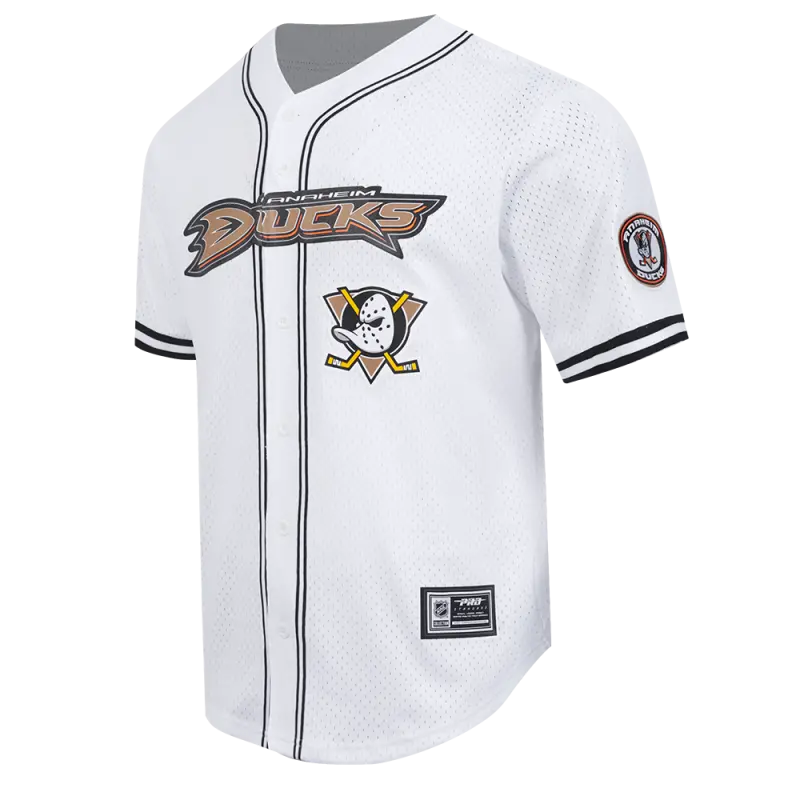 NHL ANAHEIM DUCKS CLASSIC MESH MEN’S BUTTON DOWN SHIRT (WHITE\/BLACK\/WHTE)