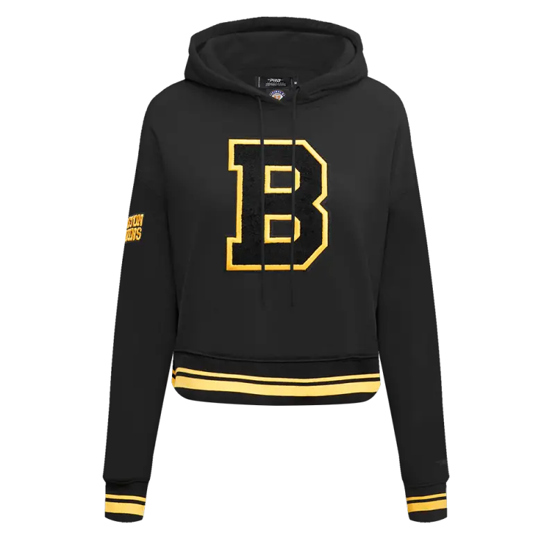 NHL BOSTON BRUINS RETRO CLASSIC WOMEN’S RIB CROPPED PULLOVER HOODIE (BLACK\/YELLOW)