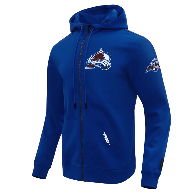 NHL COLORADO AVALANCHE CLASSIC CHENILLE MEN’S DK FULL ZIP PULLOVER HOODIE (DODGER BLUE)