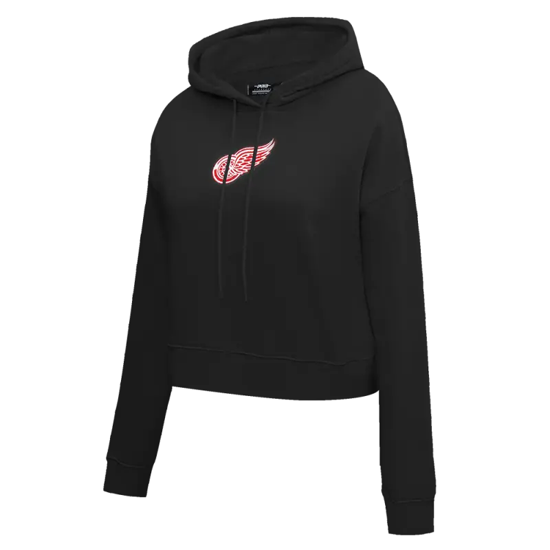 NHL DETROIT RED WINGS CLASSIC WOMEN’S FLEECE CROPPED PULLOVER HOODIE (BLACK)