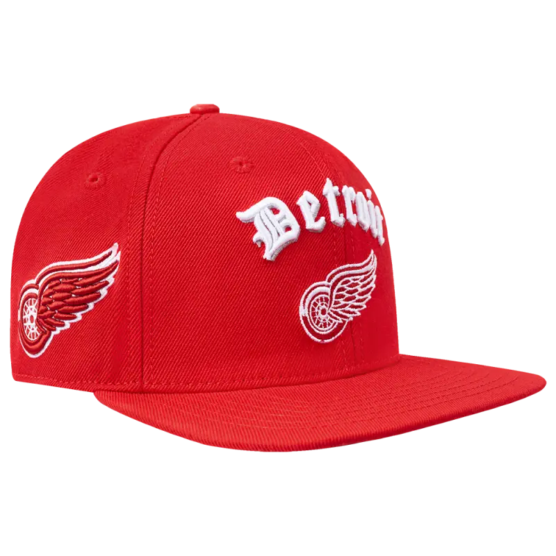 NHL DETROIT RED WINGS OLD ENGLISH UNISEX 6 PANEL SNAPBACK HAT (RED)