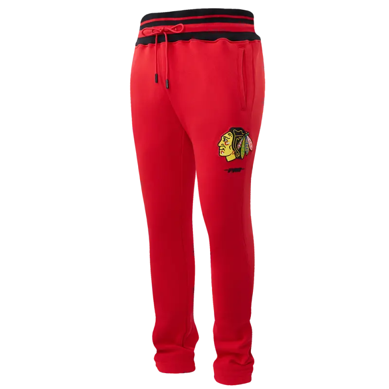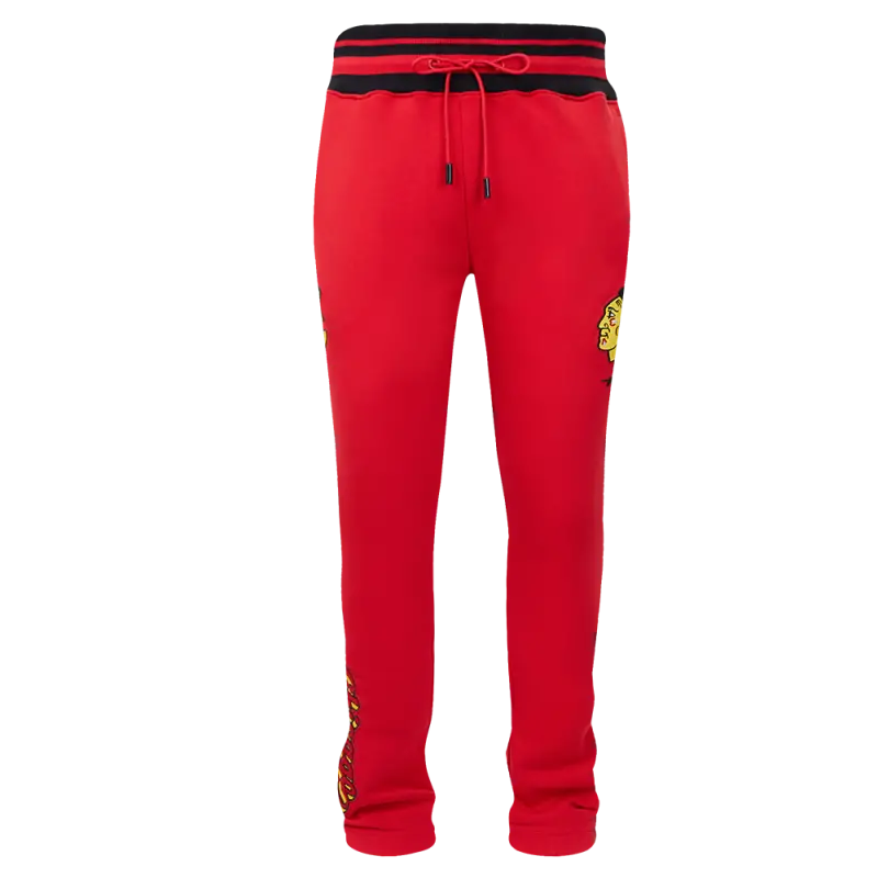 NHL CHICAGO BLACKHAWKS SCRIPT TAIL MEN’S RIB FLEECE SWEATPANT (RED\/BLACK)