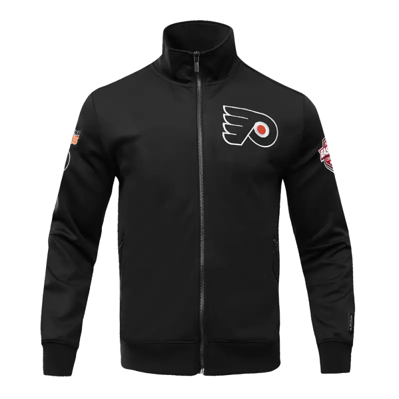 NHL PHILADELPHIA FLYERS CLASSIC CHENILLE MEN’S DOUBLE KNIT TRACK JACKET (BLACK)