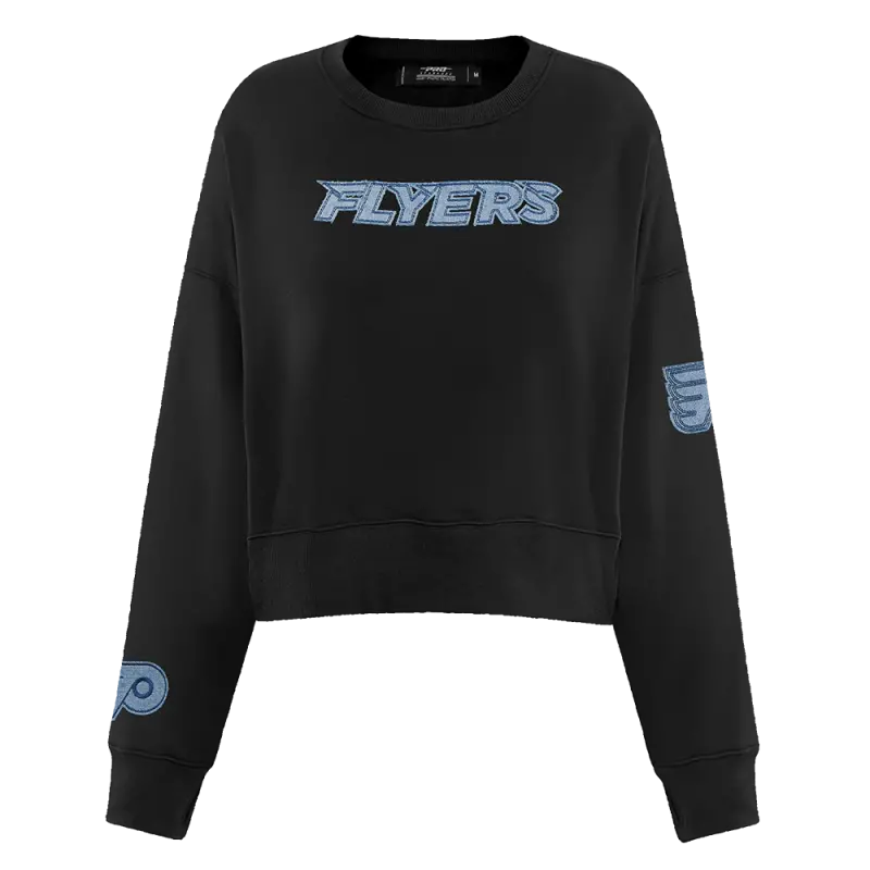 NHL PHILADELPHIA FLYERS VARSITY BLUES WOMEN’S CREWNECK (BLACK)