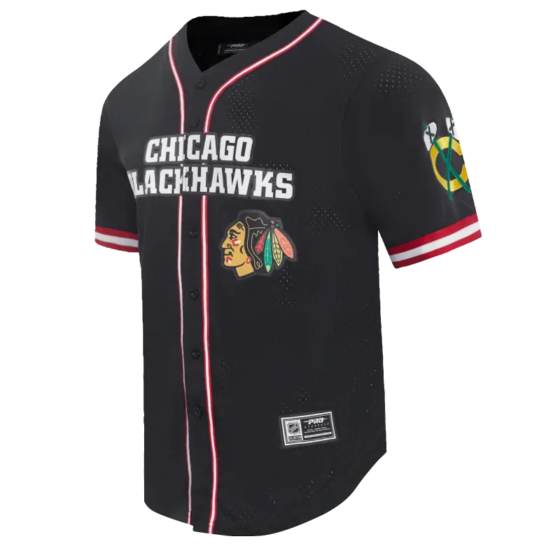NHL CHICAGO BLACKHAWKS CLASSIC MEN’S MESH BUTTON DOWN SHIRT (BLACK\/RED)
