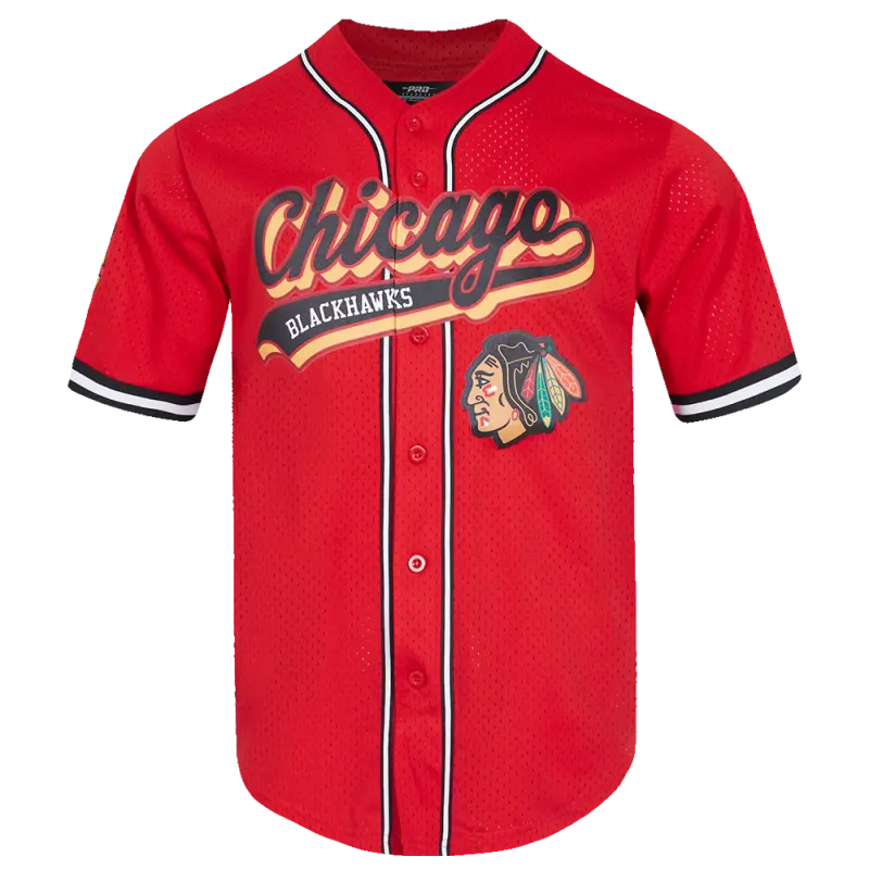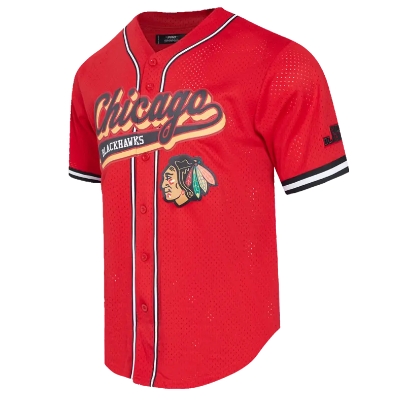 NHL CHICAGO BLACKHAWKS SCRIPT TAIL MEN’S MESH BUTTON DOWN SHIRT (RED\/BLACK)