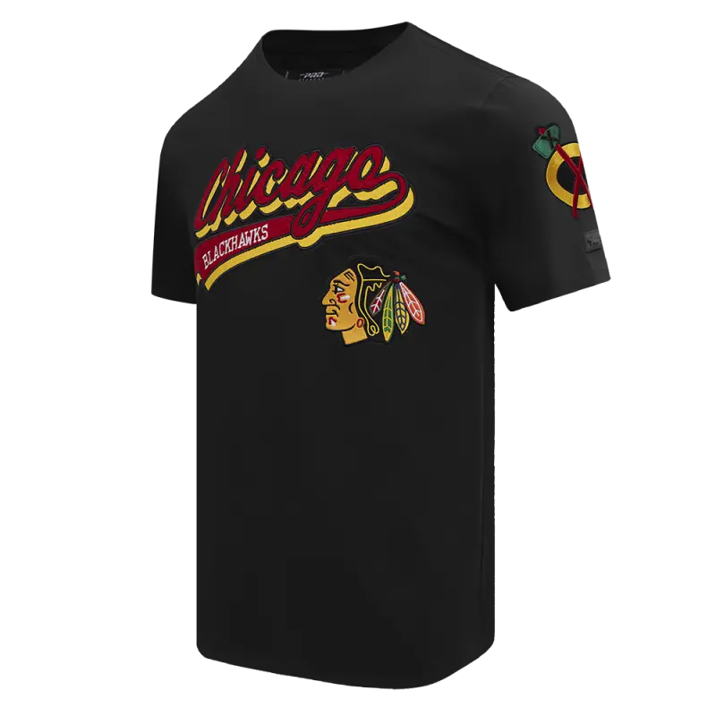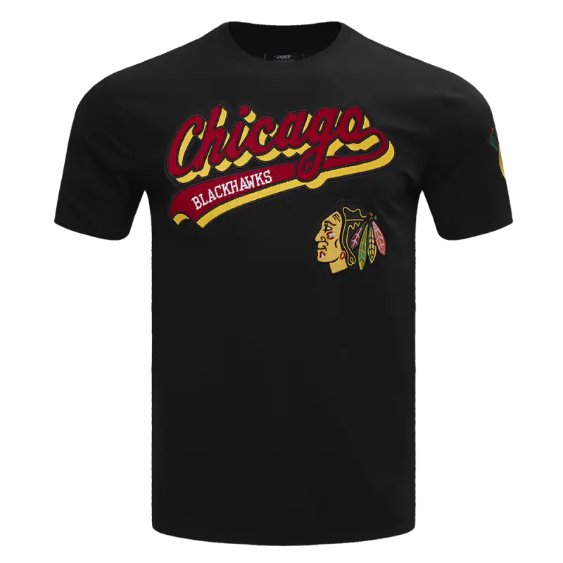 NHL CHICAGO BLACKHAWKS SCRIPT TAIL MEN’S TEE (BLACK)