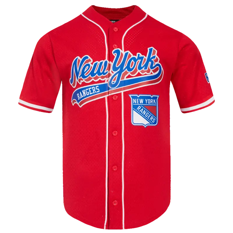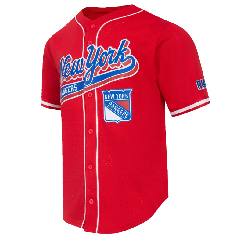 NHL NEW YORK RANGERS SCRIPT TAIL MEN’S MESH BUTTON DOWN SHIRT (RED)