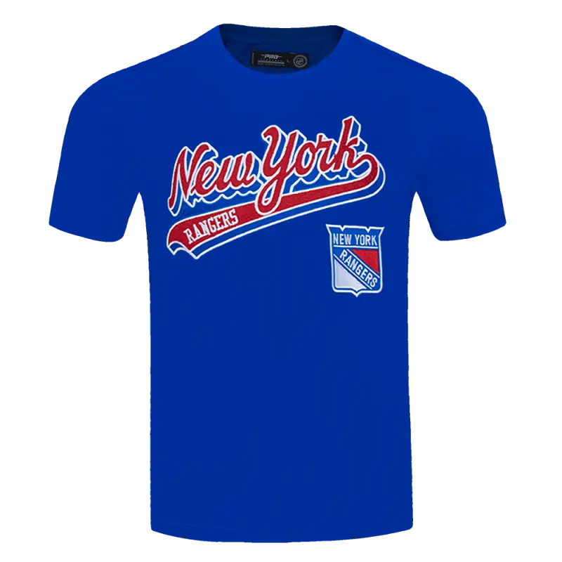 NHL NEW YORK RANGERS SCRIPT TAIL MEN’S TEE (ROYAL BLUE)