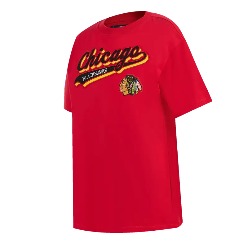 NHL CHICAGO BLACKHAWKS SCRIPT TAIL WOMEN’S BOYFRIEND TEE (RED)