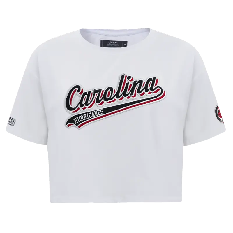 NHL CAROLINA HURRICANES SCRIPT TAIL WOMEN’S SJ BOXY TEE (WHITE)
