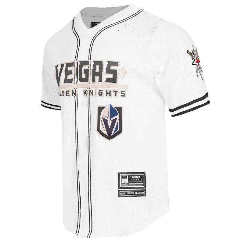 NHL VEGAS GOLDEN KNIGHTS CLASSIC MEN’S MESH BUTTON DOWN JERSEY (WHITE \/ BLACK \/ WHTE)