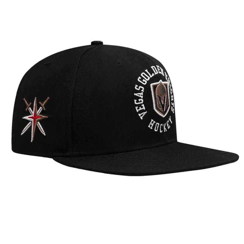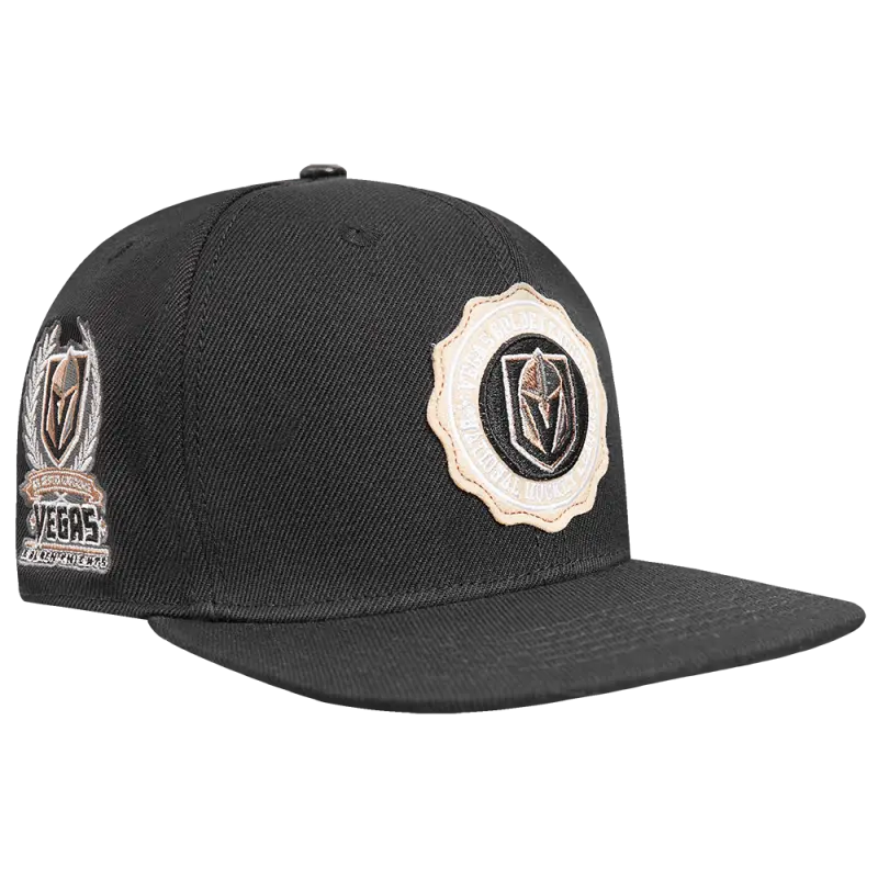 NHL VEGAS GOLDEN KNIGHTS CREST EMBLEM WOOL SNAPBACK HAT (BLACK)