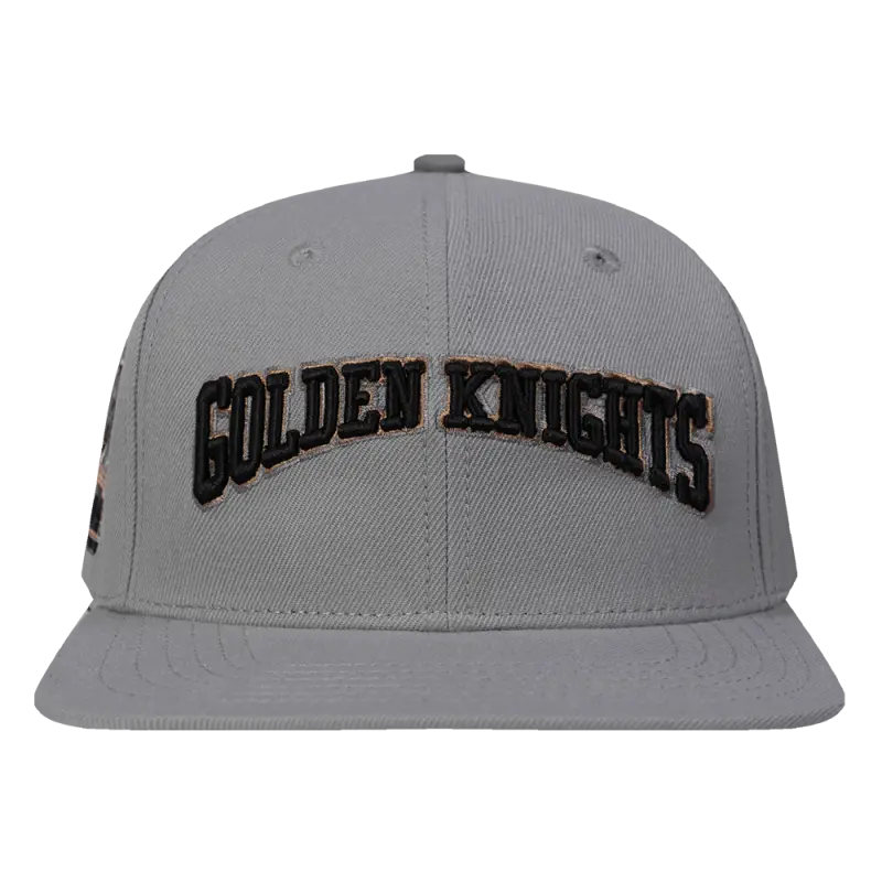 NHL VEGAS GOLDEN KNIGHTS CREST EMBLEM WORDMARK WOOL SNAPBACK HAT (GRAY)