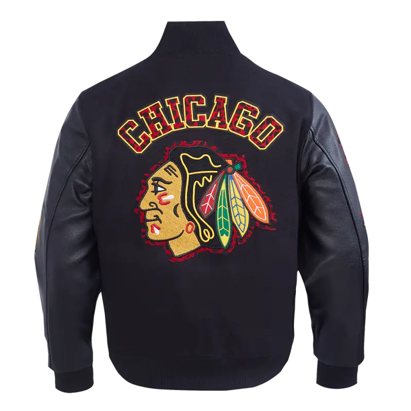 Home / Shop / NHL CHICAGO BLACKHAWKS ANIMAL PRINT MEN’S WOOL VARSITY JACKET (JET BLACK)