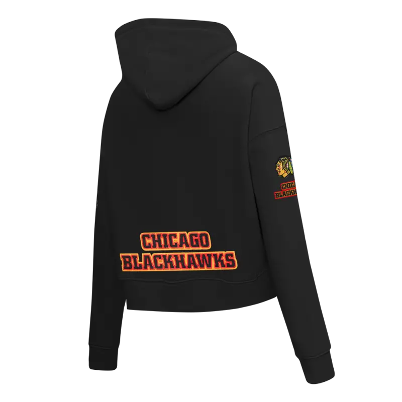 NHL CHICAGO BLACKHAWKS CLASSIC WOMEN’S FLC CROPPED PO HOODIE (BLACK)
