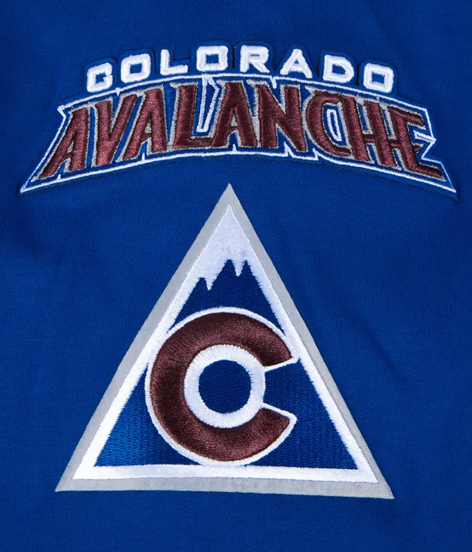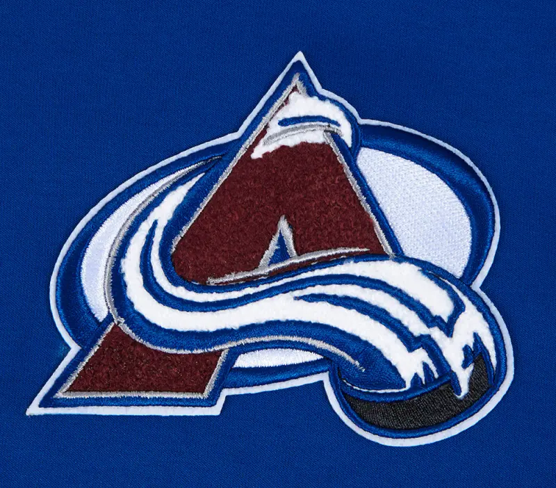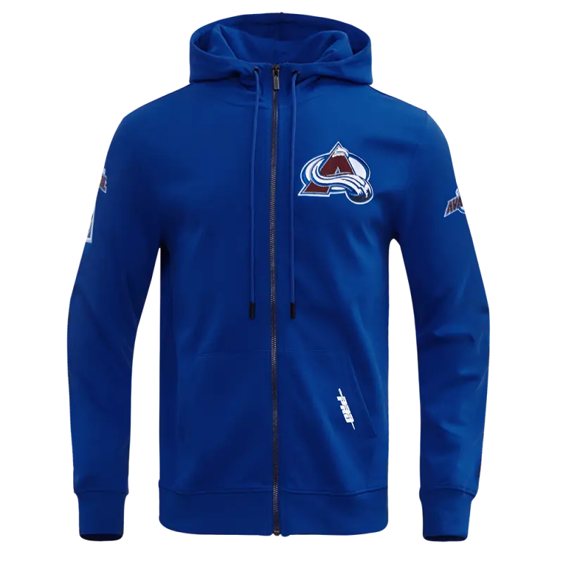 NHL COLORADO AVALANCHE CLASSIC CHENILLE MEN’S DK FULL ZIP PULLOVER HOODIE (DODGER BLUE)