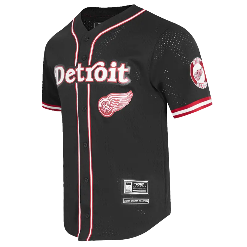 NHL DETROIT RED WINGS CLASSIC MESH MEN’S BUTTON DOWN SHIRT (BLACK\/RED)