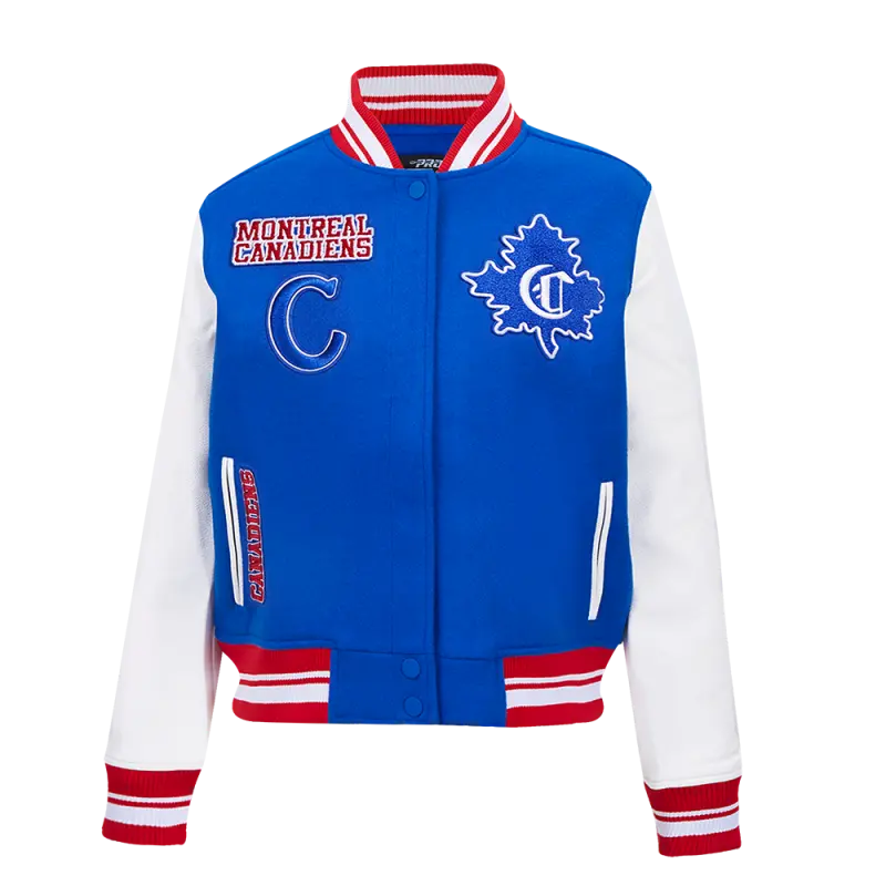 NHL MONTREAL CANADIENS RETRO CLASSIC WOMEN’S RIB WOOL VARSITY JACKET (ROYAL BLUE\/RED)
