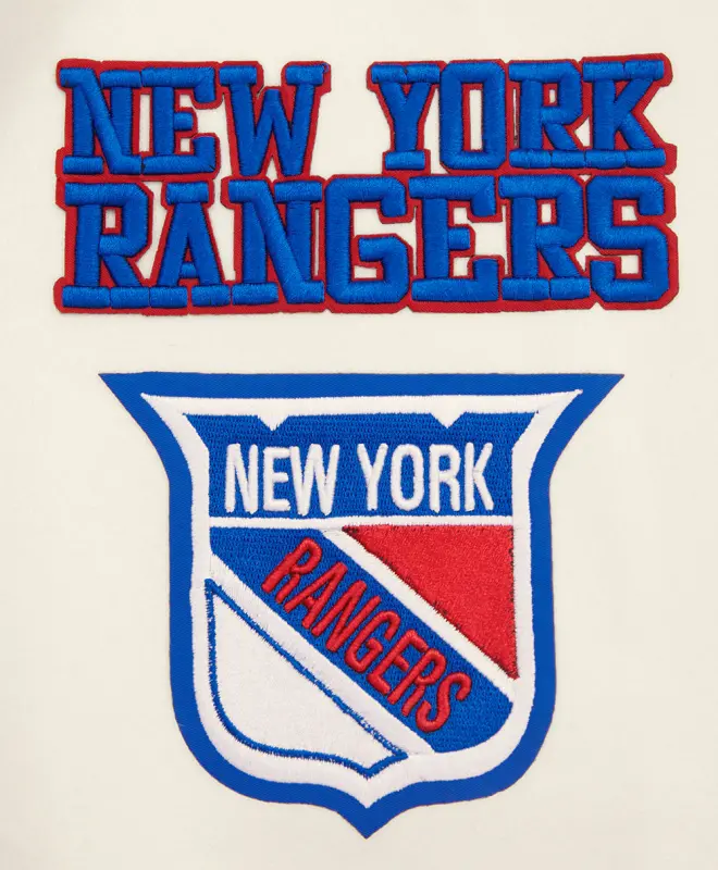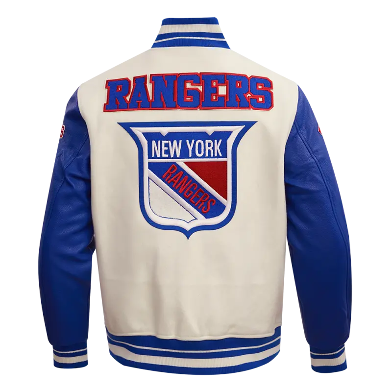 NHL NEW YORK RANGERS RETRO CLASSIC MEN’S RIB WOOL VARSITY JAC (EGGSHELL\/ ROYAL BLUE)